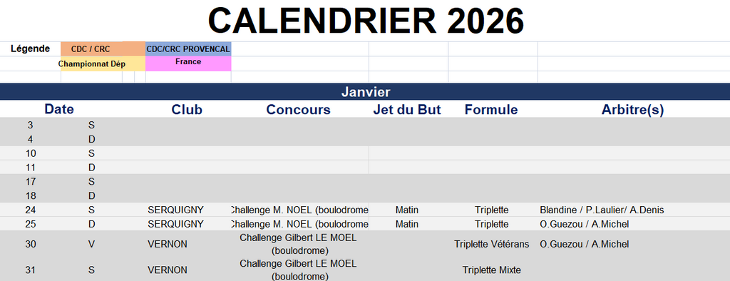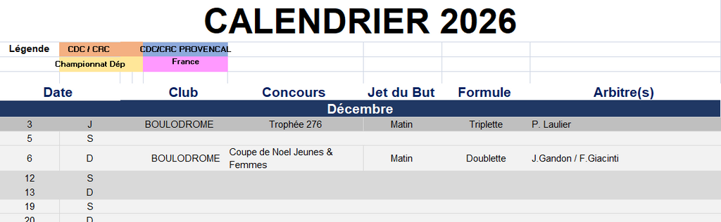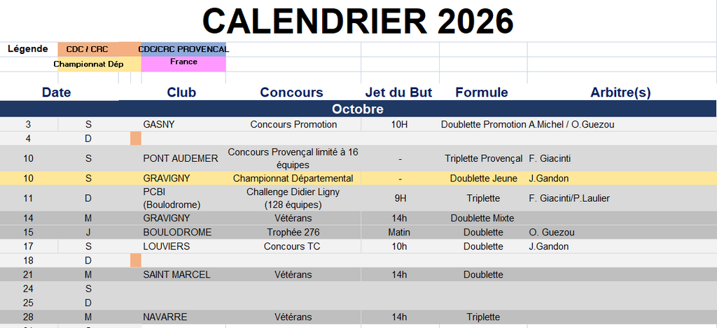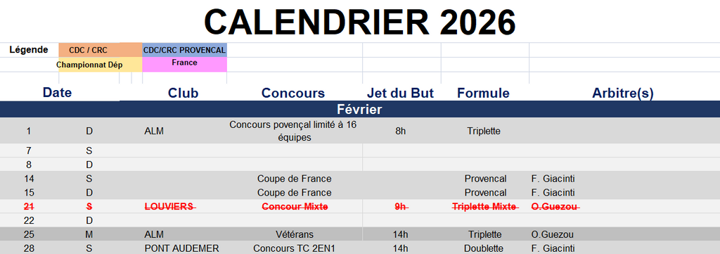 cALENDRIER DES COMPETITIONS